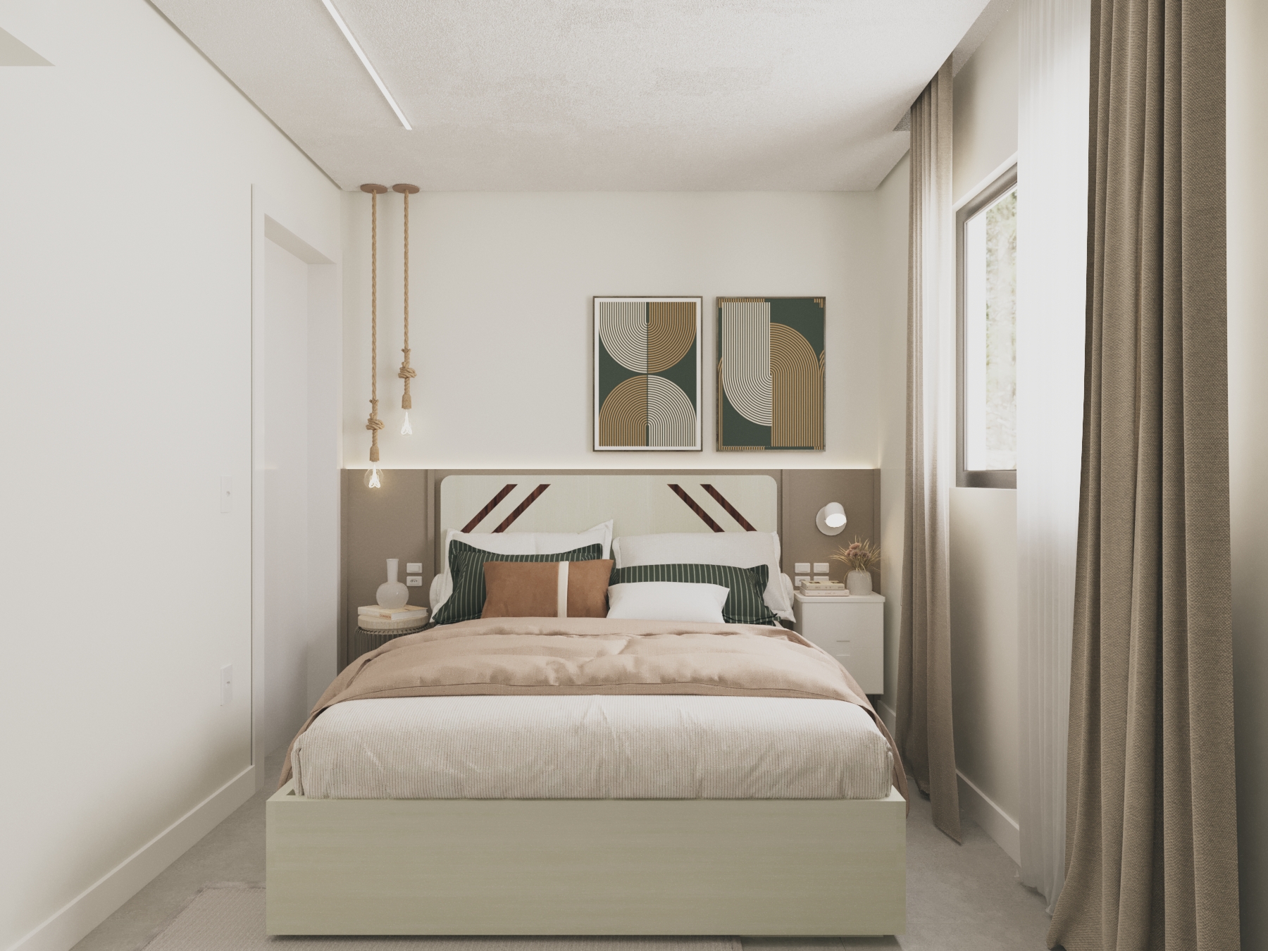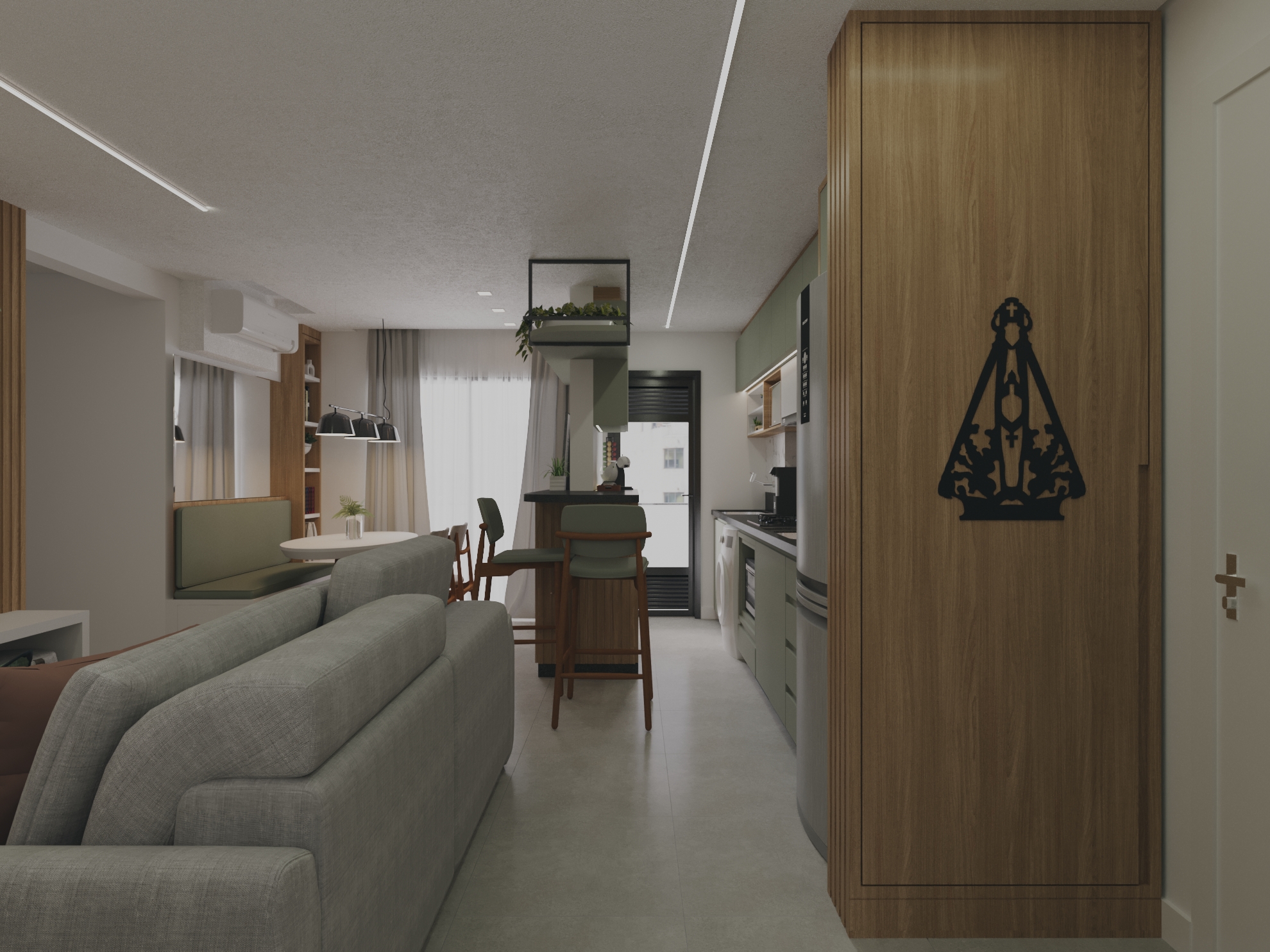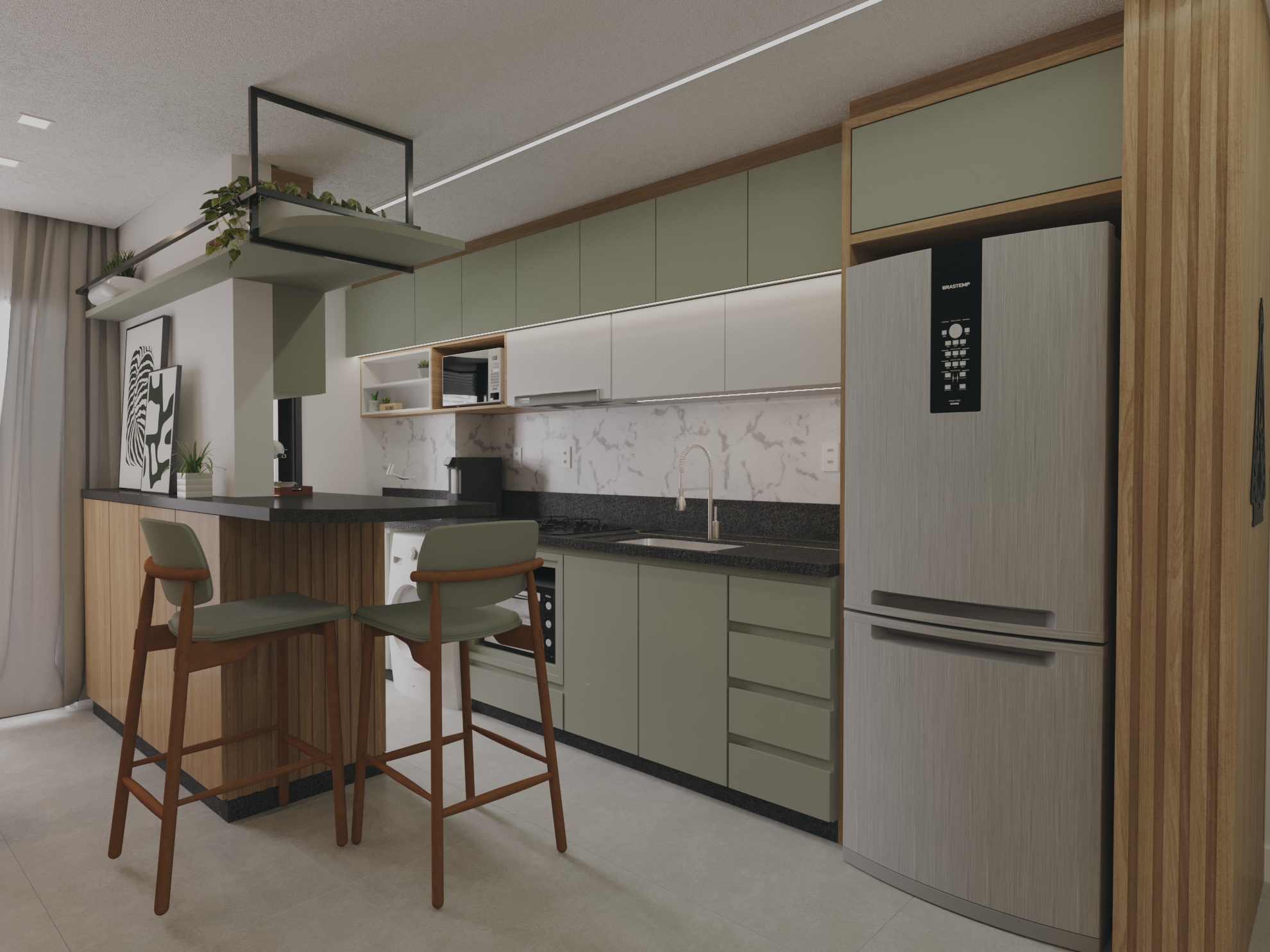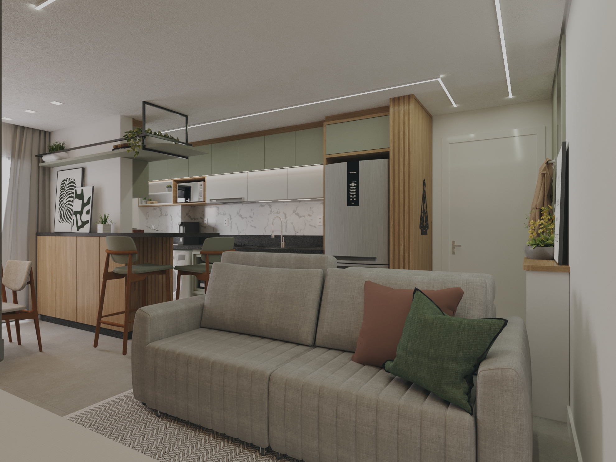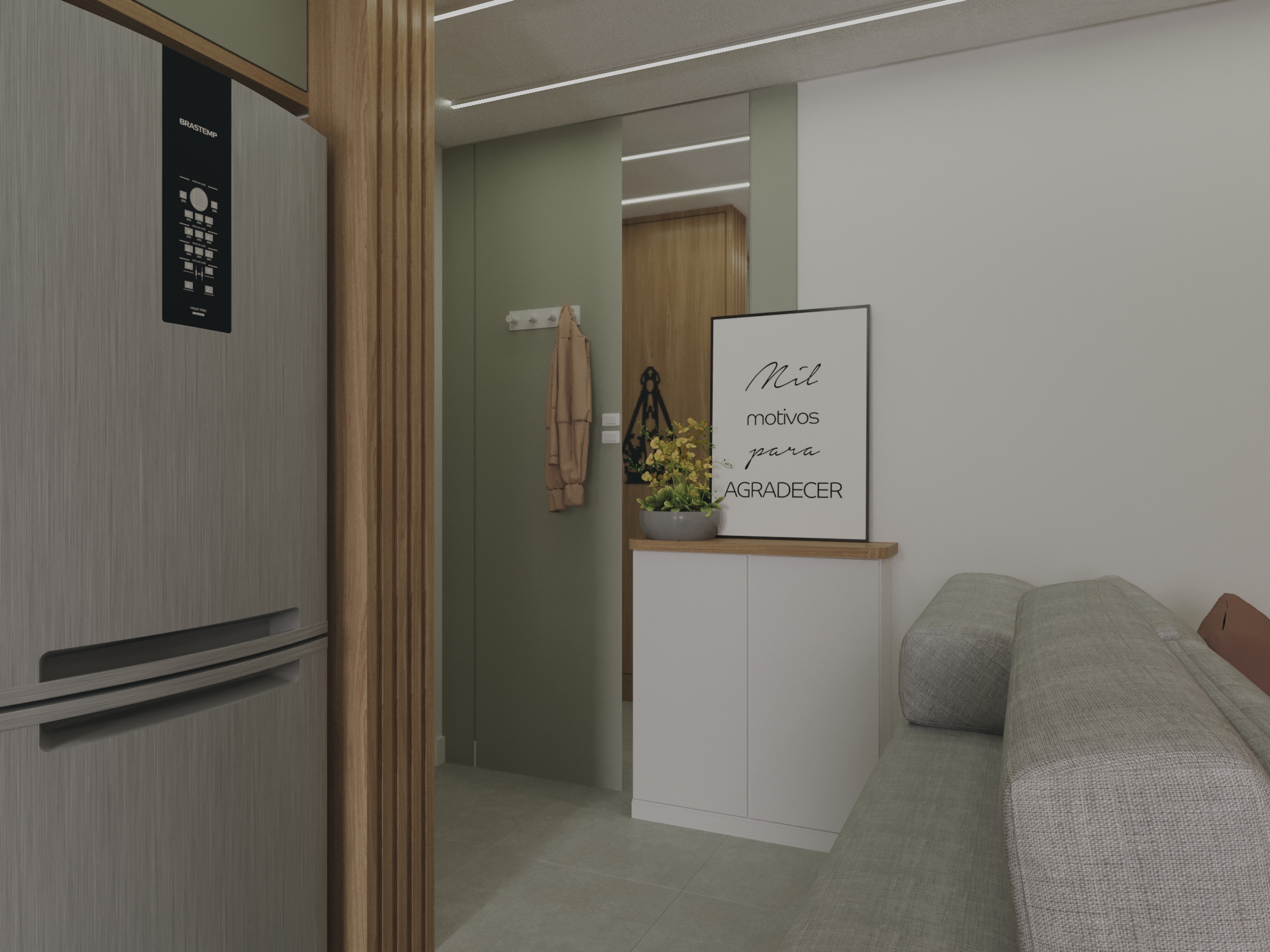 O apartamento na praia reflete a personalidade de cada morador, com cores e detalhes que fazem sentido para quem vive cada espaço. Na área social, MDF Verti, Jequitibá e branco equilibram sofisticação e acolhimento. Cada ambiente ganhou sua identidade: os banheiros em diferentes tons de verde, os quartos adaptados ao gosto de quem os usa — do neutro ao vibrante quarto das meninas, em rosa sal, azul sereno e branco. O resultado é um lar único, colorido e cheio de personalidade, pensado para ser vivido e celebrado por todos.