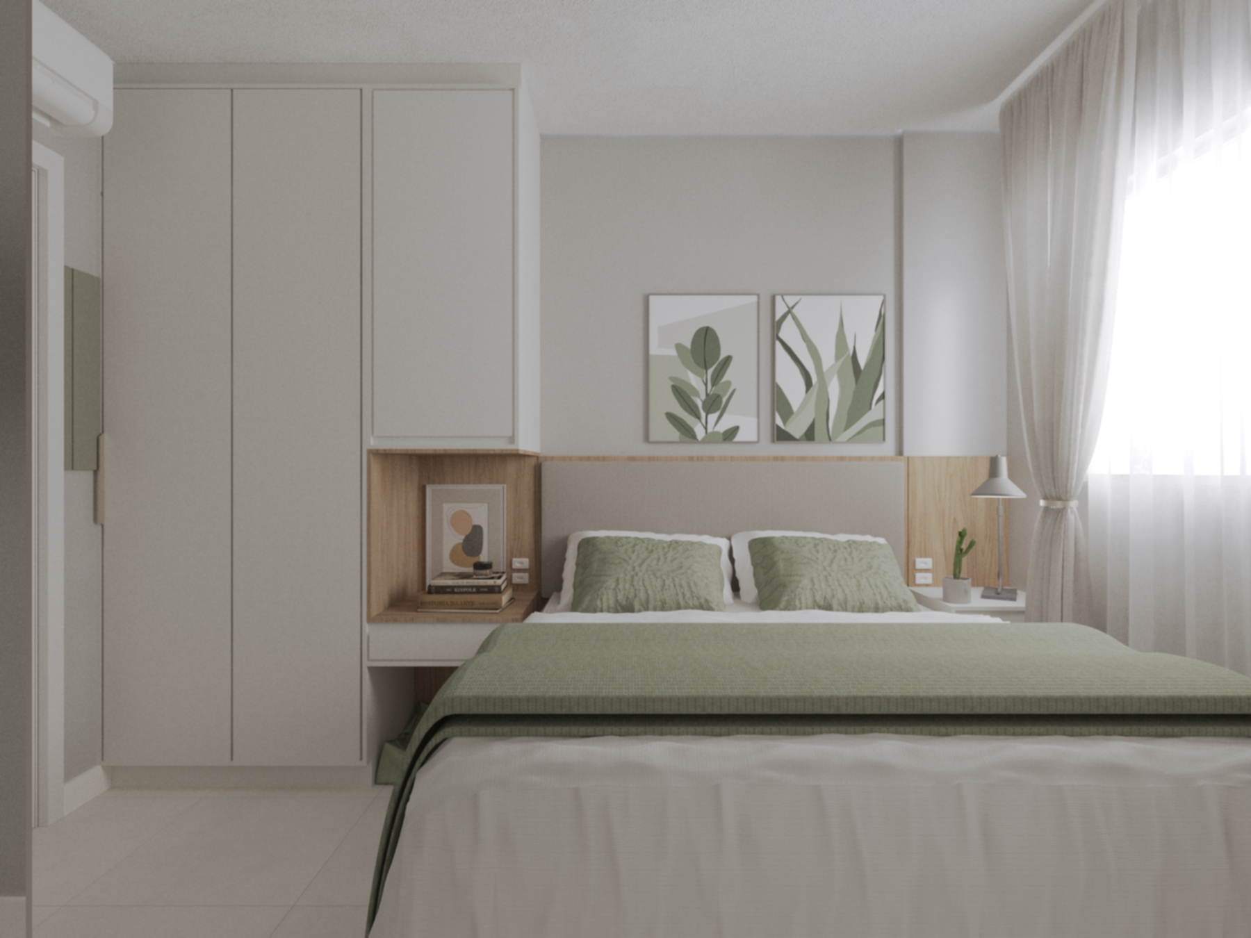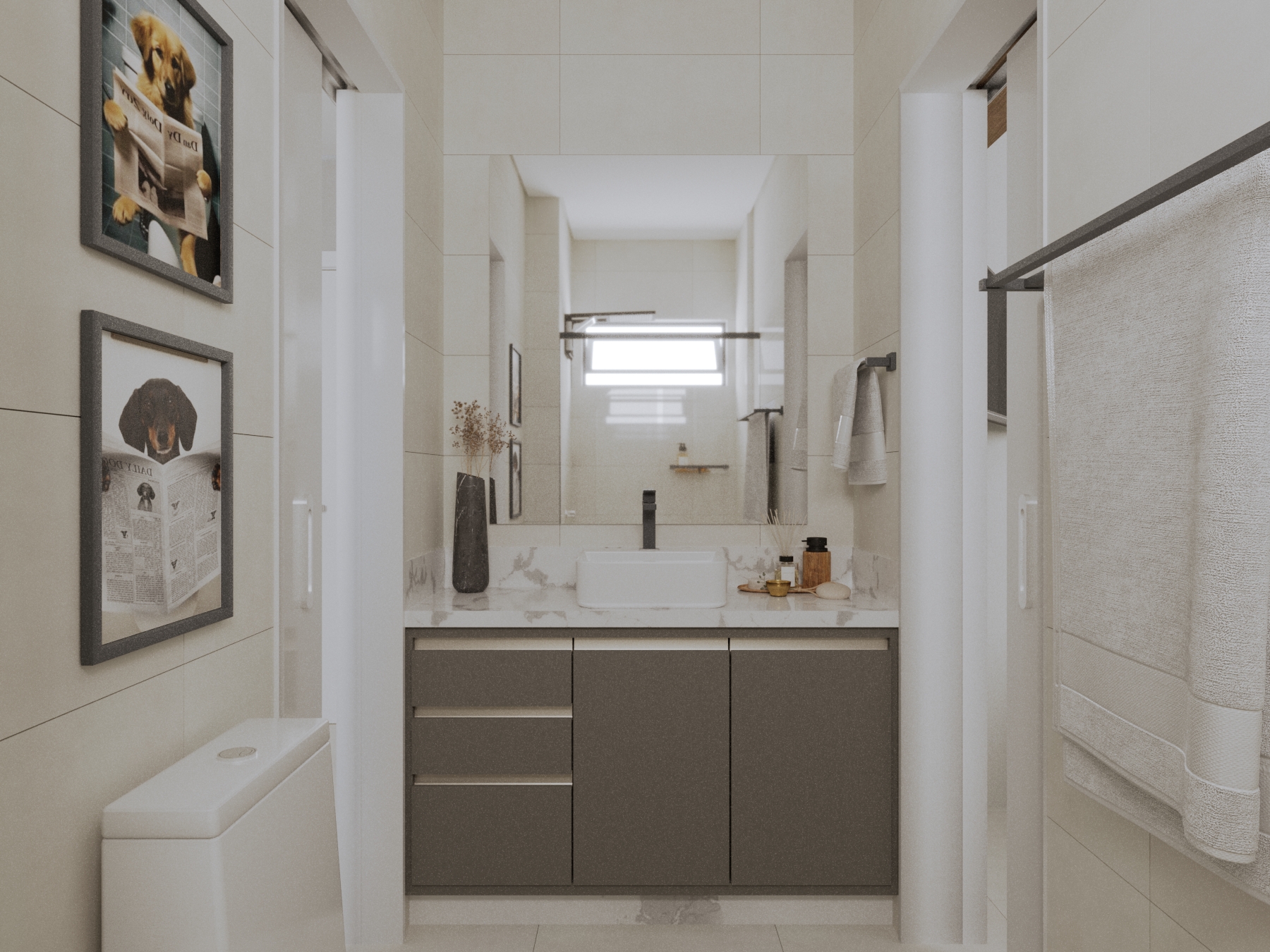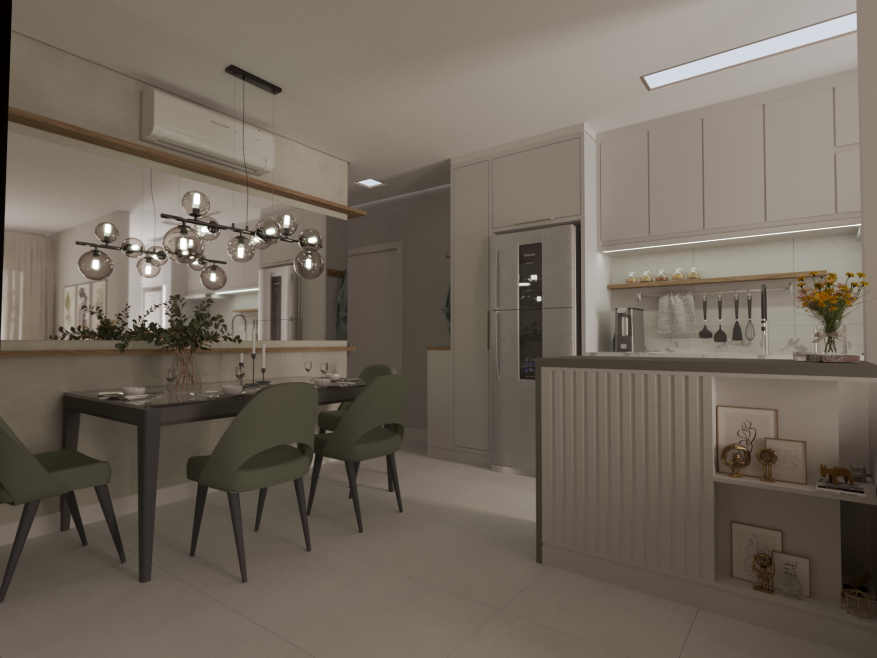 O apartamento do casal foi pensado para refletir sua personalidade e trazer acolhimento, com uma base clean em tons neutros, MDF Verti e madeira, equilibrando sofisticação e calor. Detalhes divertidos, como os dinossauros de madeira no hall, a capivarinha no hack e a placa de The Office no escritório, revelam a identidade dos moradores. Cada ambiente foi planejado de acordo com a rotina e os hábitos do casal, unindo praticidade e estilo de forma natural.